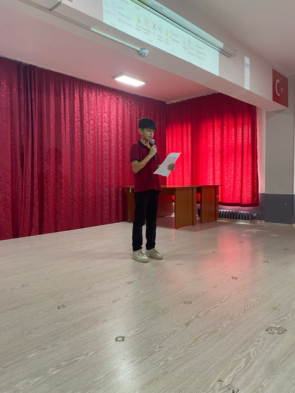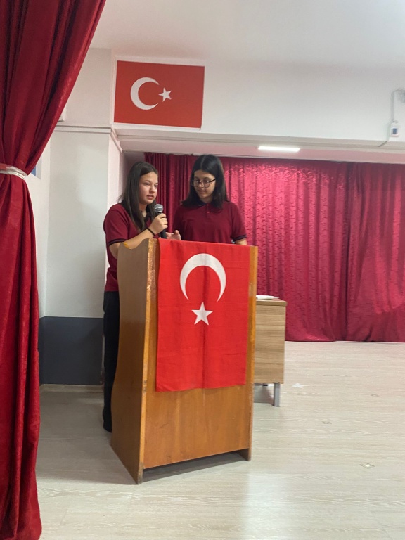 15 Temmuz Demokrasi ve Millî Birlik Günü kapsamında, milletimizin kahramanlık destanını ve vatan uğruna canlarını feda eden aziz şehitlerimizi anmak için okulumuzda bir program düzenlendi.Program, saygı duruşu ve İstiklâl Marşı’nın okunmasının ardından öğrencilerimiz günün anlam ve önemini belirten konuşmalar yaptı, şiirler okundu. Programın hazırlanmasında emeği geçen öğretmen ve öğrencilerimize teşekkür ediyoruz.